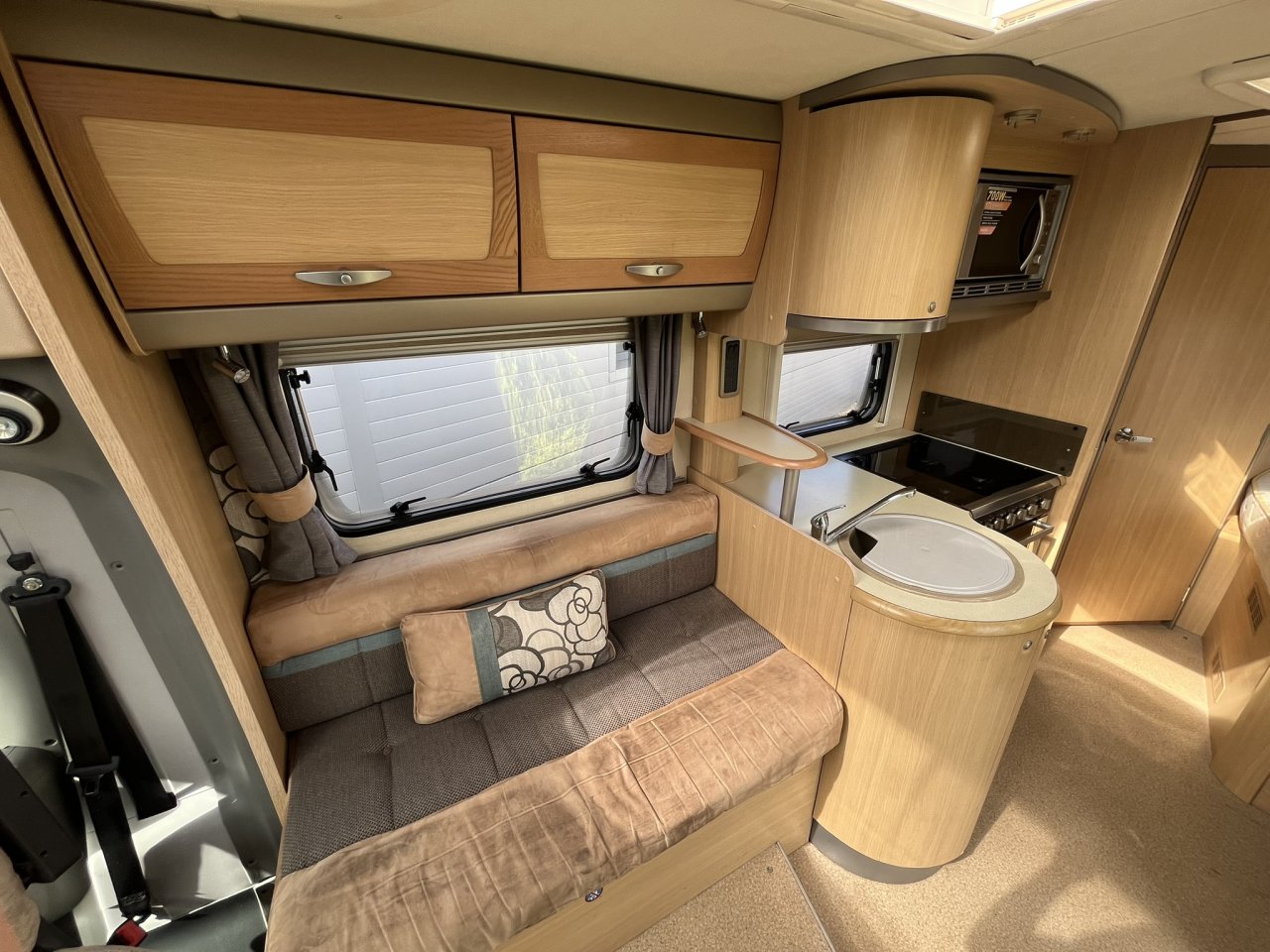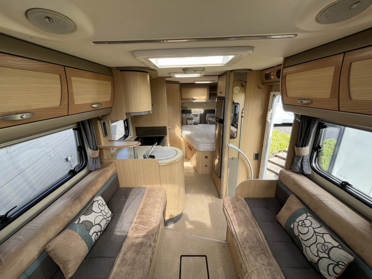 The E560 blends Swift Group’s premium build with a timeless interior design that still feels modern today. Its fixed-bed layout, high-quality furnishings, and robust construction make it ideal for couples or small families who want a dependable, stylish motorhome ready for adventure.