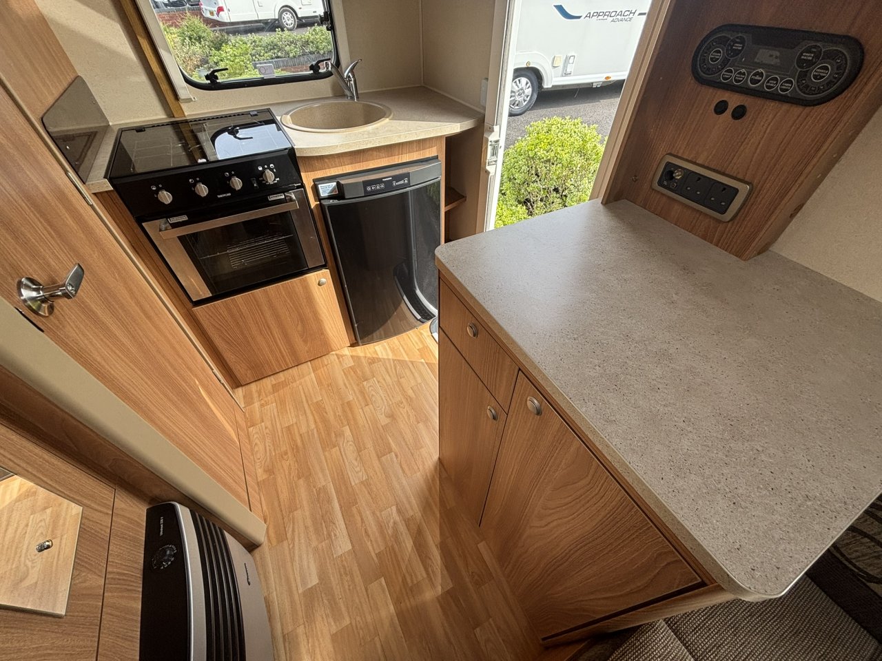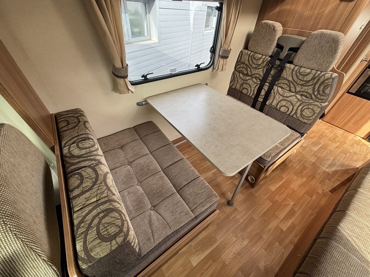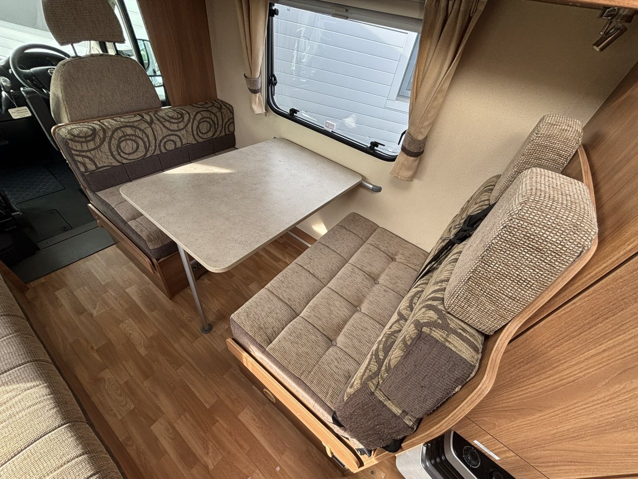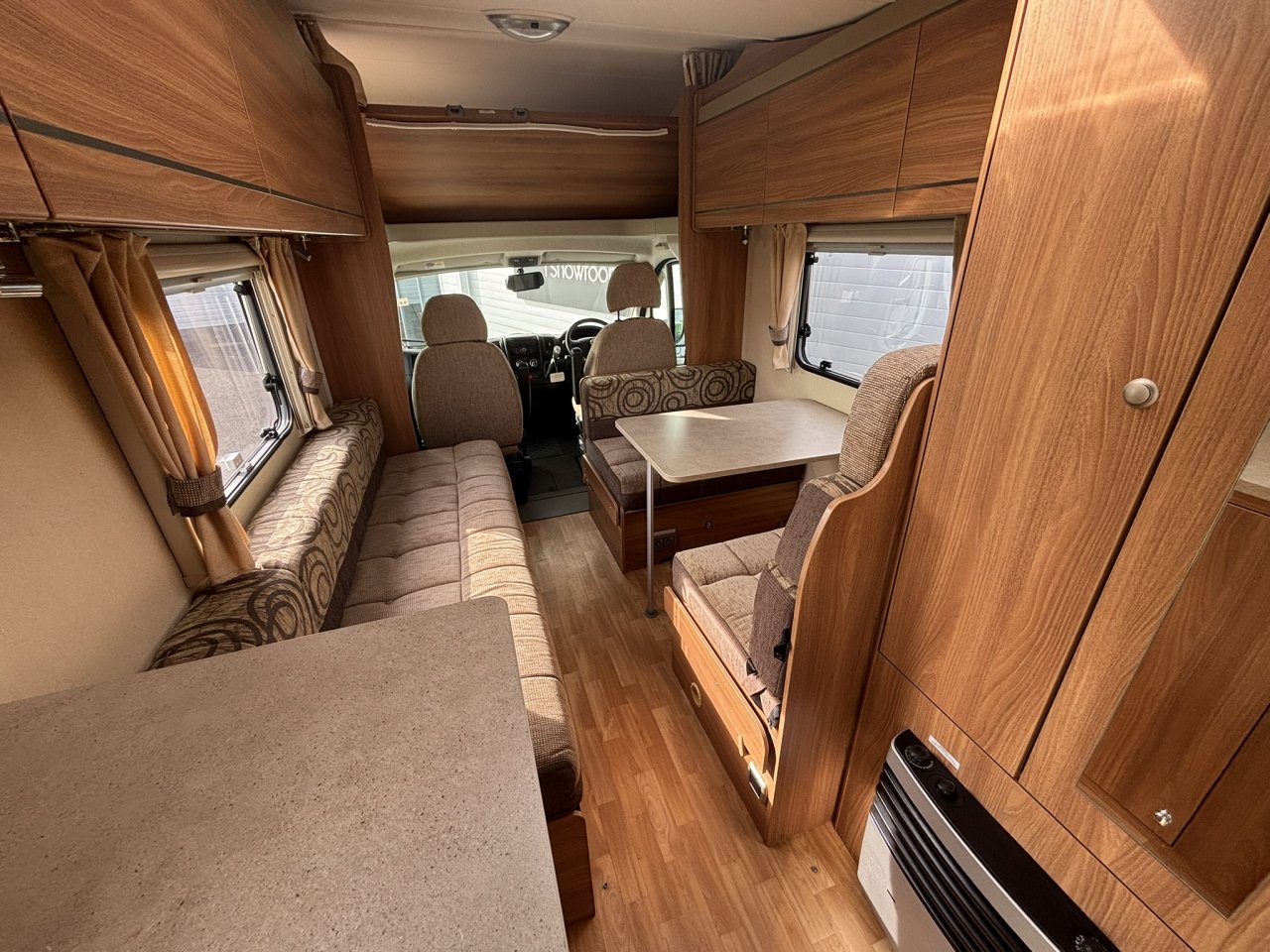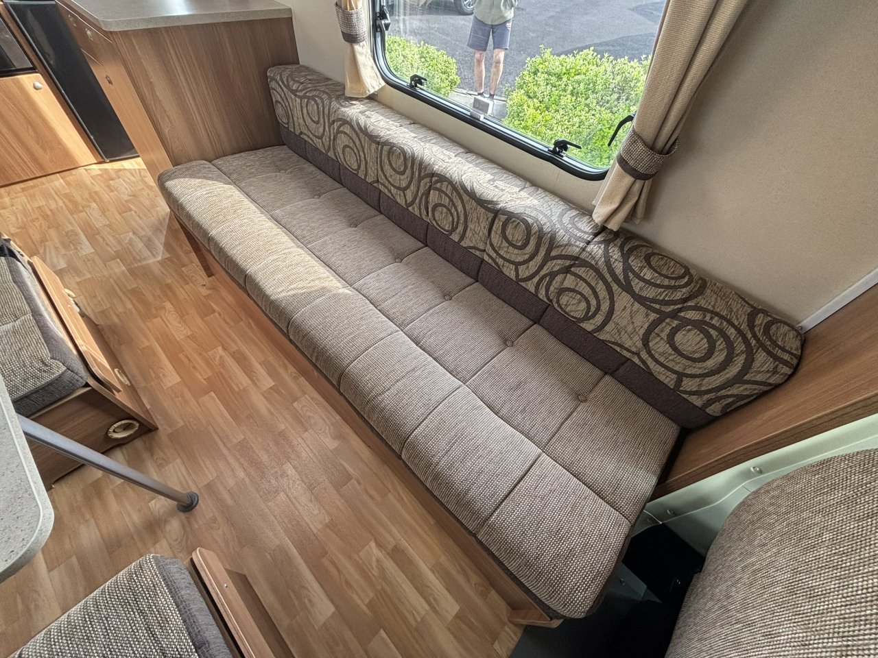 This superb motorhome boasts a industry favourite layout with 5 comfortable berths, an end kitchen with corner washroom, centre double dinette with extra travelling belts, long bench seat opposite and over the cab the large double bed.