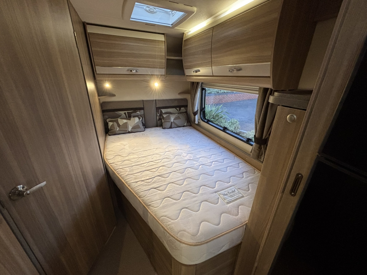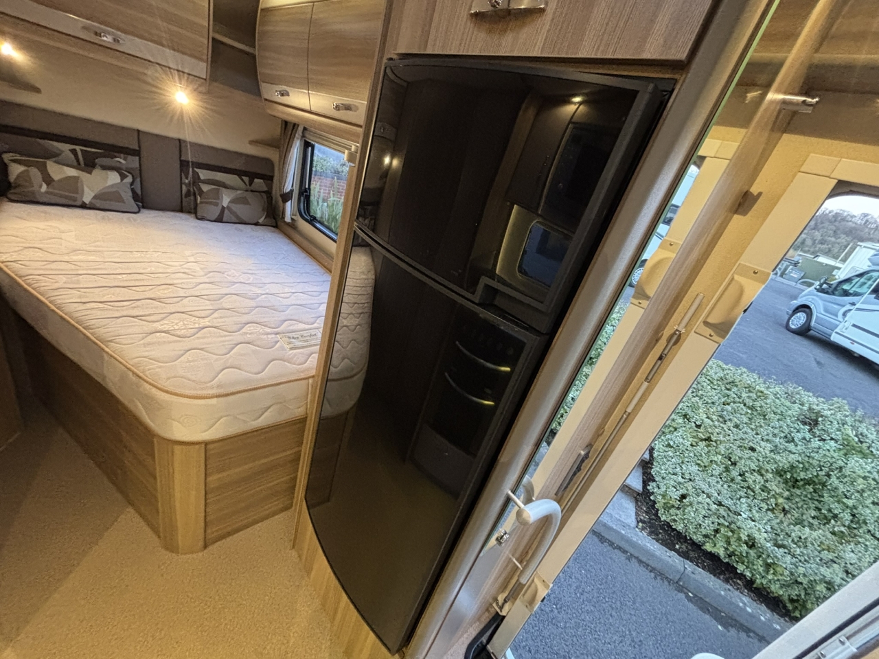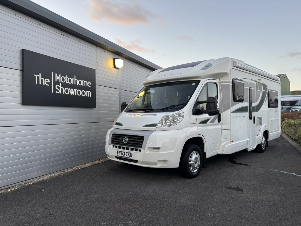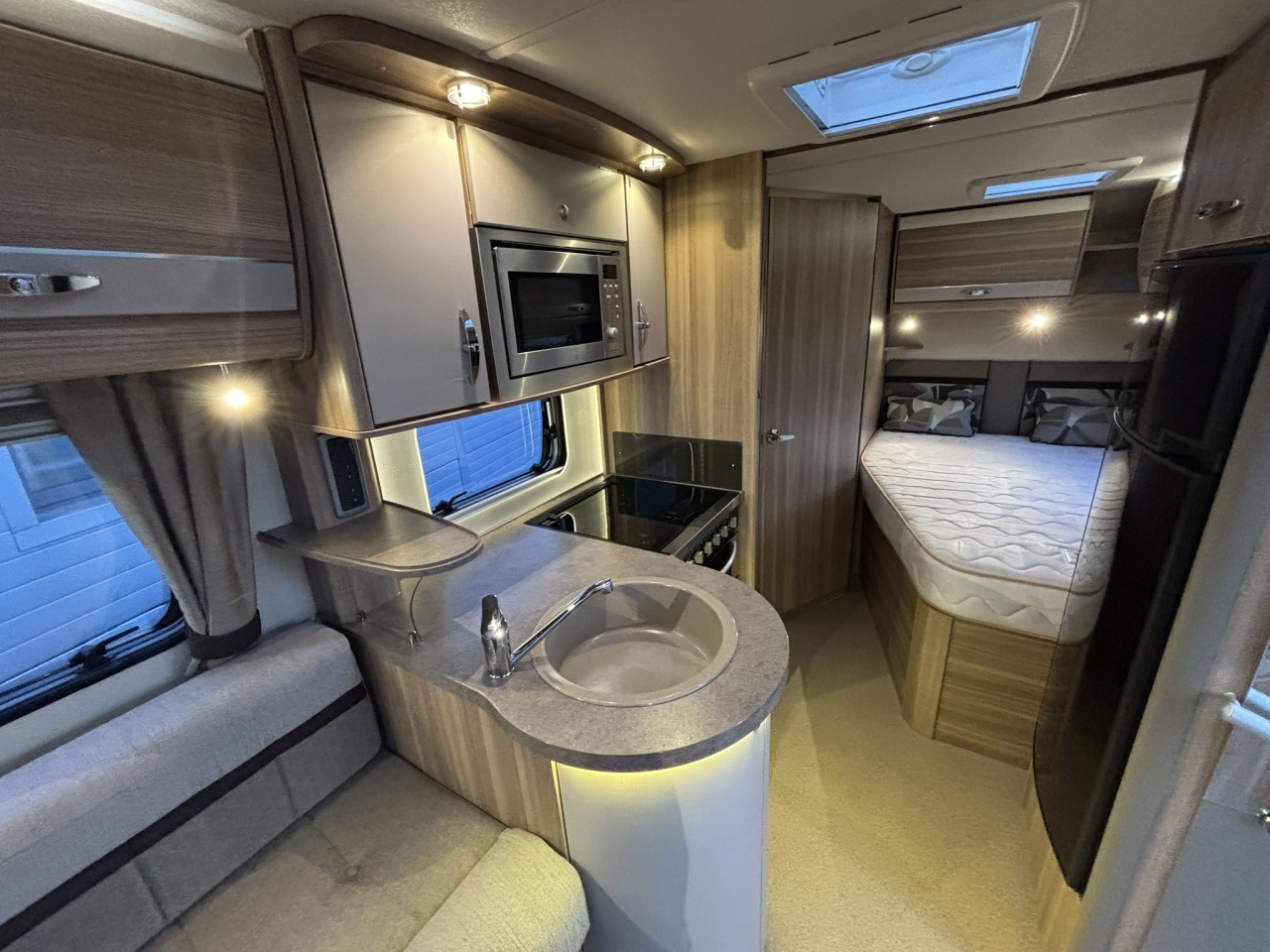 This lovely motorhome is a favourite and it’s easy to see why with 4 comfortable berths made up from the fixed rear bed and converted lounge.