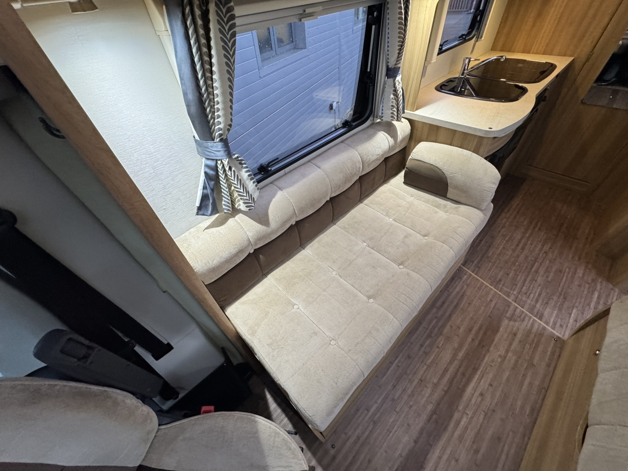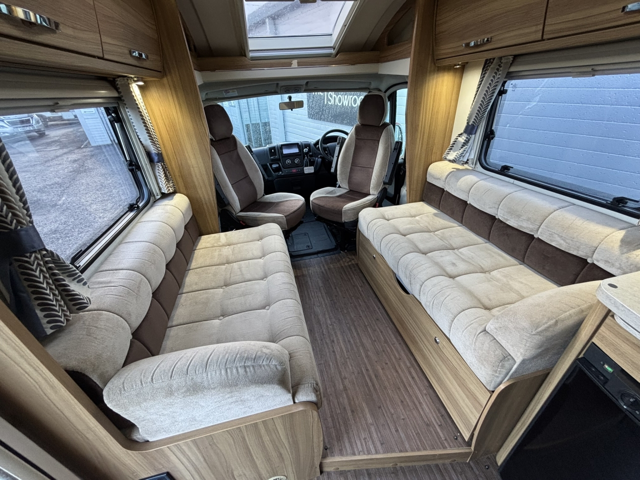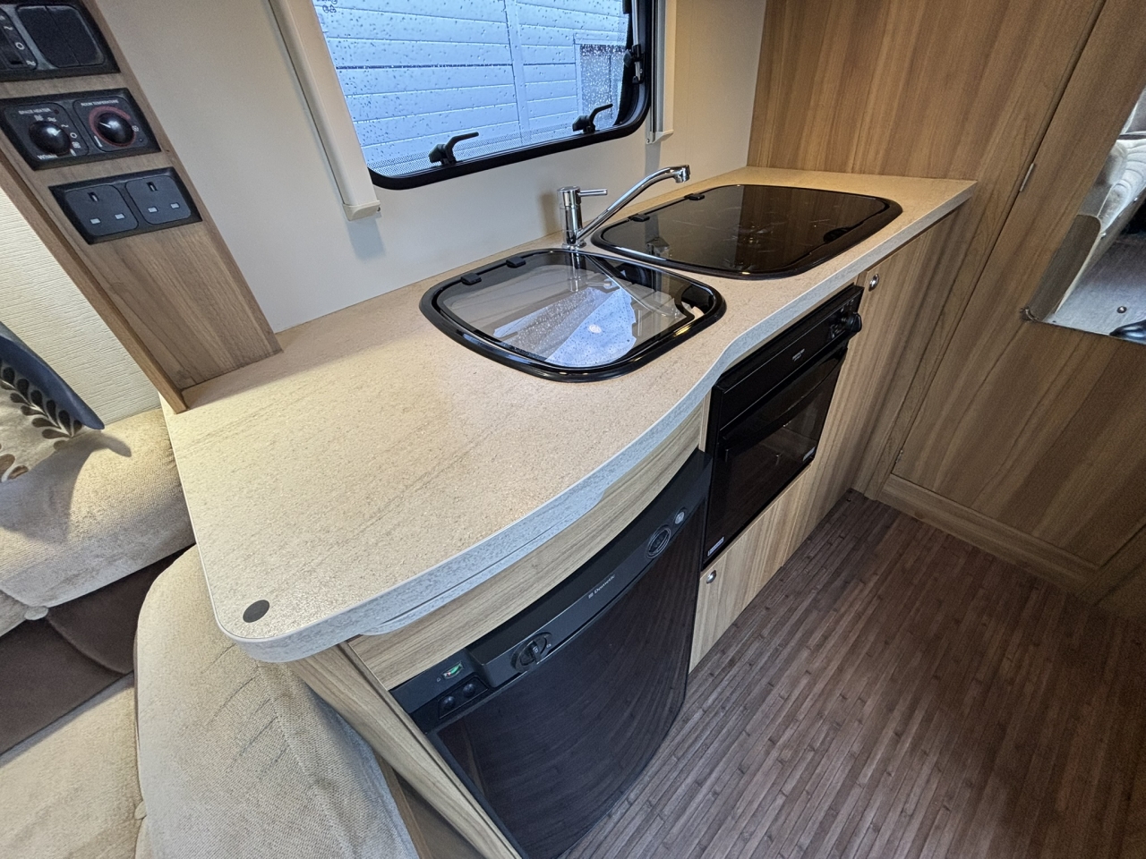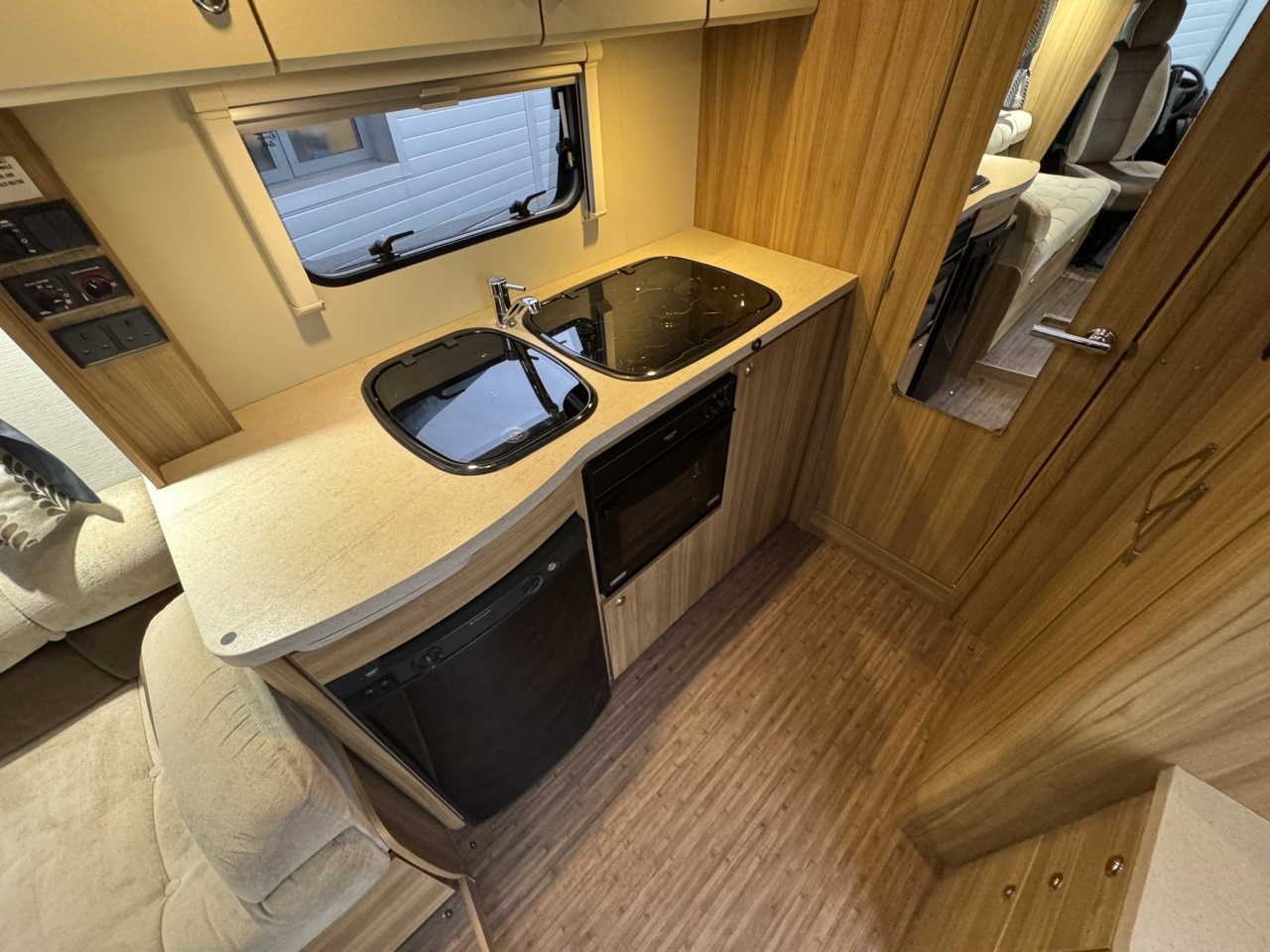 Then have a look at our 105 from Elddis. Inside you have a superb feeling of space with it’s light and airy lounge comprising of 2 bench seats and swivel captain chairs, you then have a central kitchen complete with a oven, fridge/freezer and microwave and at the rear a decent end washroom.