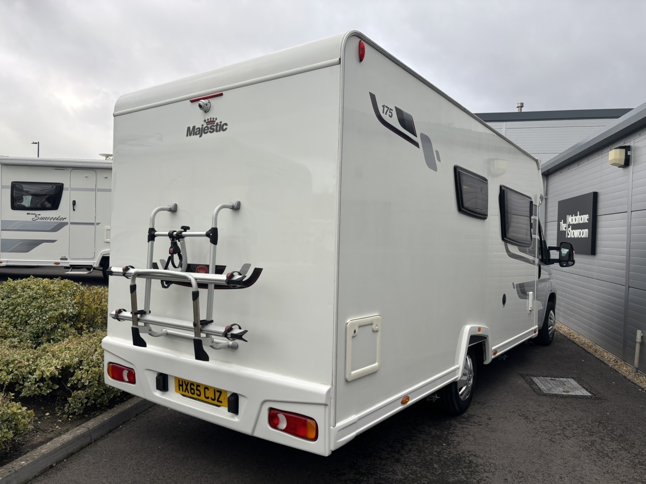 The Majestic 175 from Elddis is a superb, luxury 2-berth with its spacious front lounge, ample light with large habitation windows and panoramic roof light, decent fully equipped kitchen and at the rear the large washroom with plenty of elbow space and the separate step in shower providing the home from home feel.