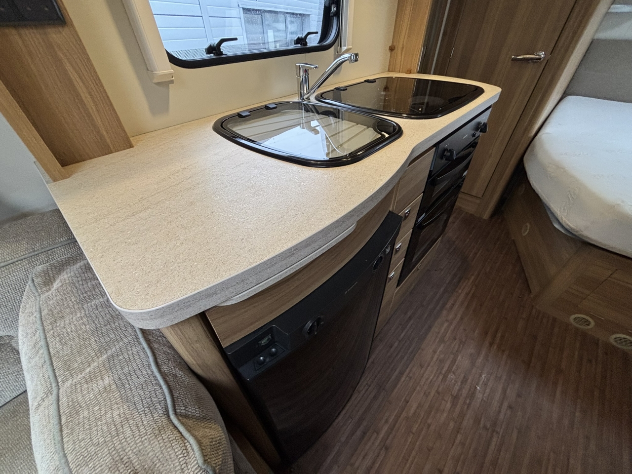 - Layout: Fixed Bed / End Washroom