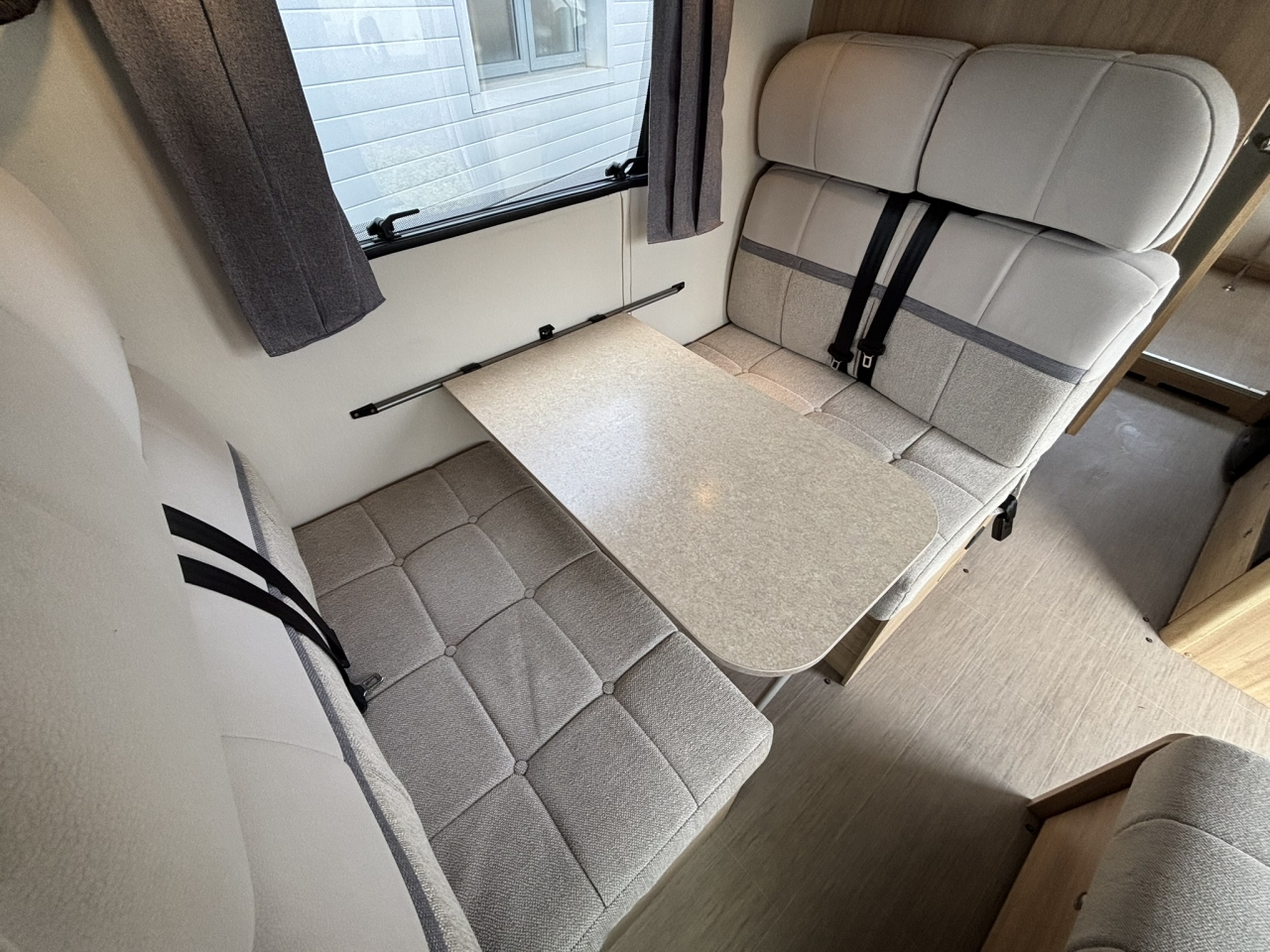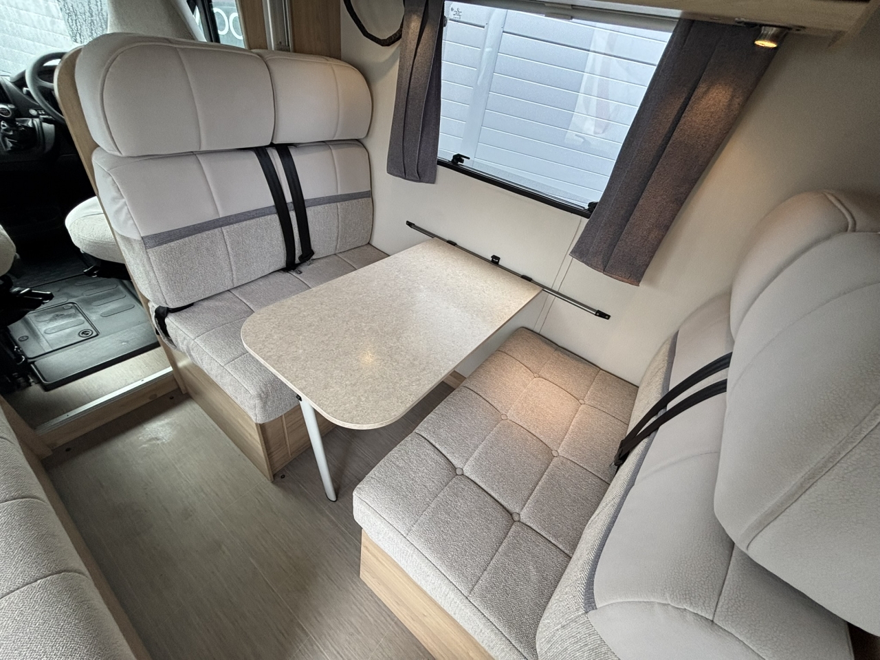 This Autoquest 196 from Elddis packs the superb 6-berth layout comprising of the rear lounge, double dinette with extra travelling belts, side kitchen with washroom opposite and the clever drop down double bed.