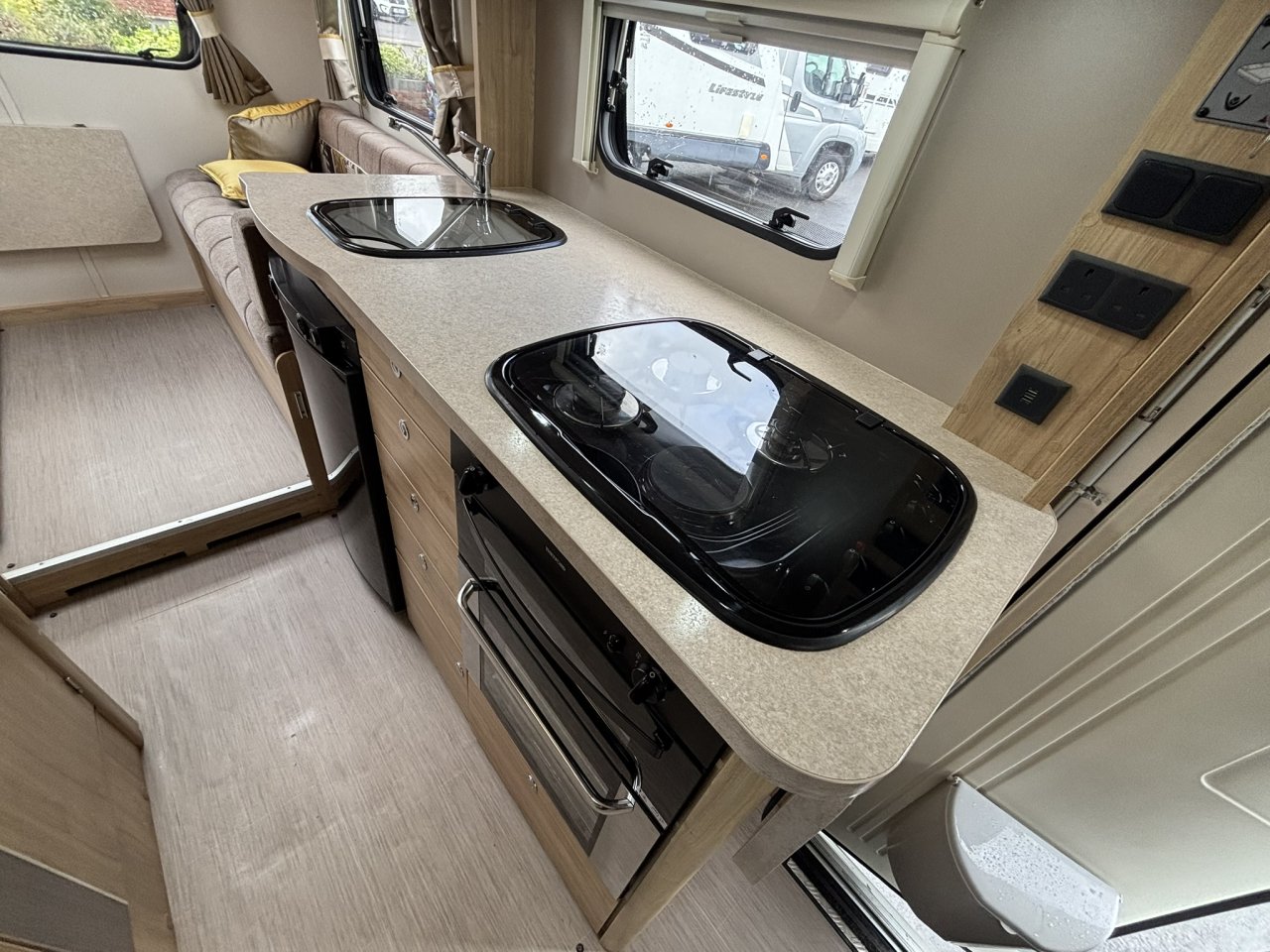 The Evolution 196 is one of Elddis’ most popular layouts because it offers true flexibility. Whether you’re a family needing space, a couple wanting a roomy tourer, or someone looking for a motorhome that adapts to every trip, the 196 delivers. The electric drop‑down bed is a standout feature, giving you the convenience of a fixed bed without sacrificing daytime living space.