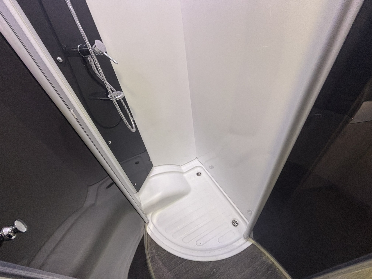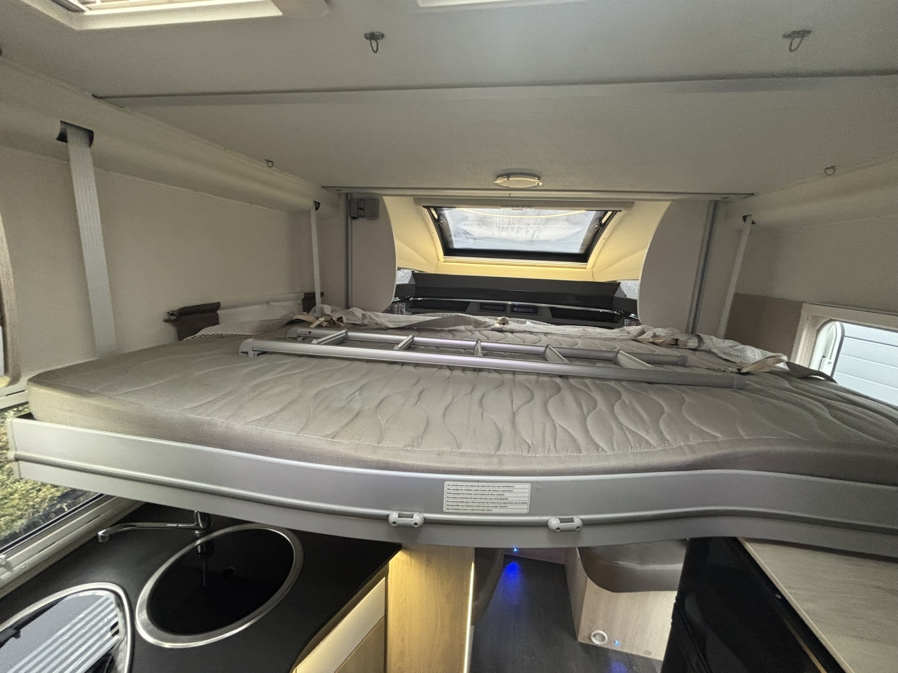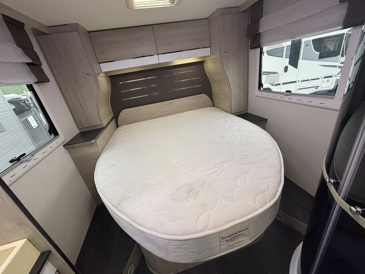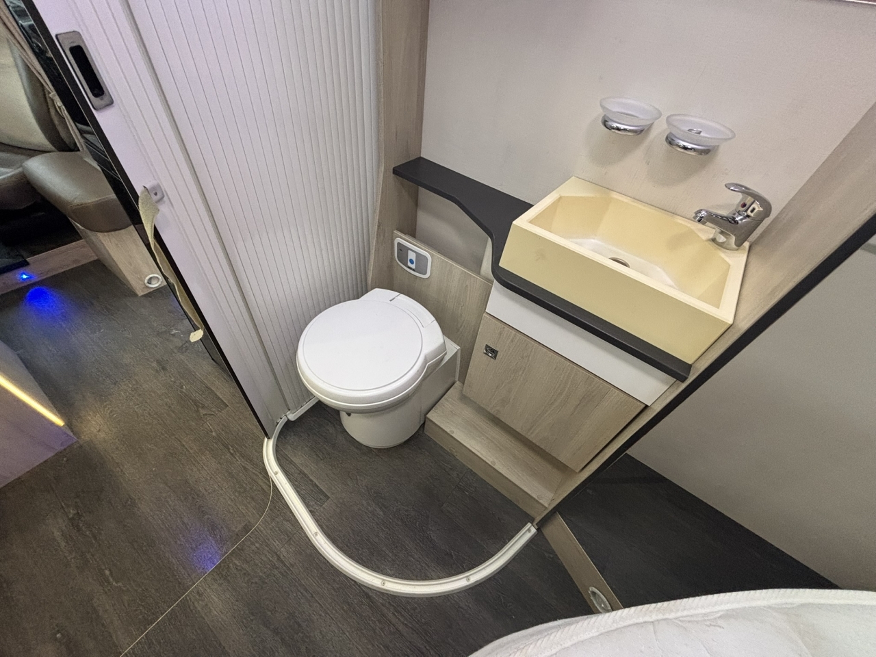 The Key aspects of this model are the Separate Shower & Toilet: Enjoy the comfort of a full washroom with privacy and convenience. A fully equipped kitchen containing large fridge-freezer, oven, hob, and sink—ready for gourmet meals on the go. Most importantly a fixed rear double bed and an electric drop-down bed—ideal for couples or small families.