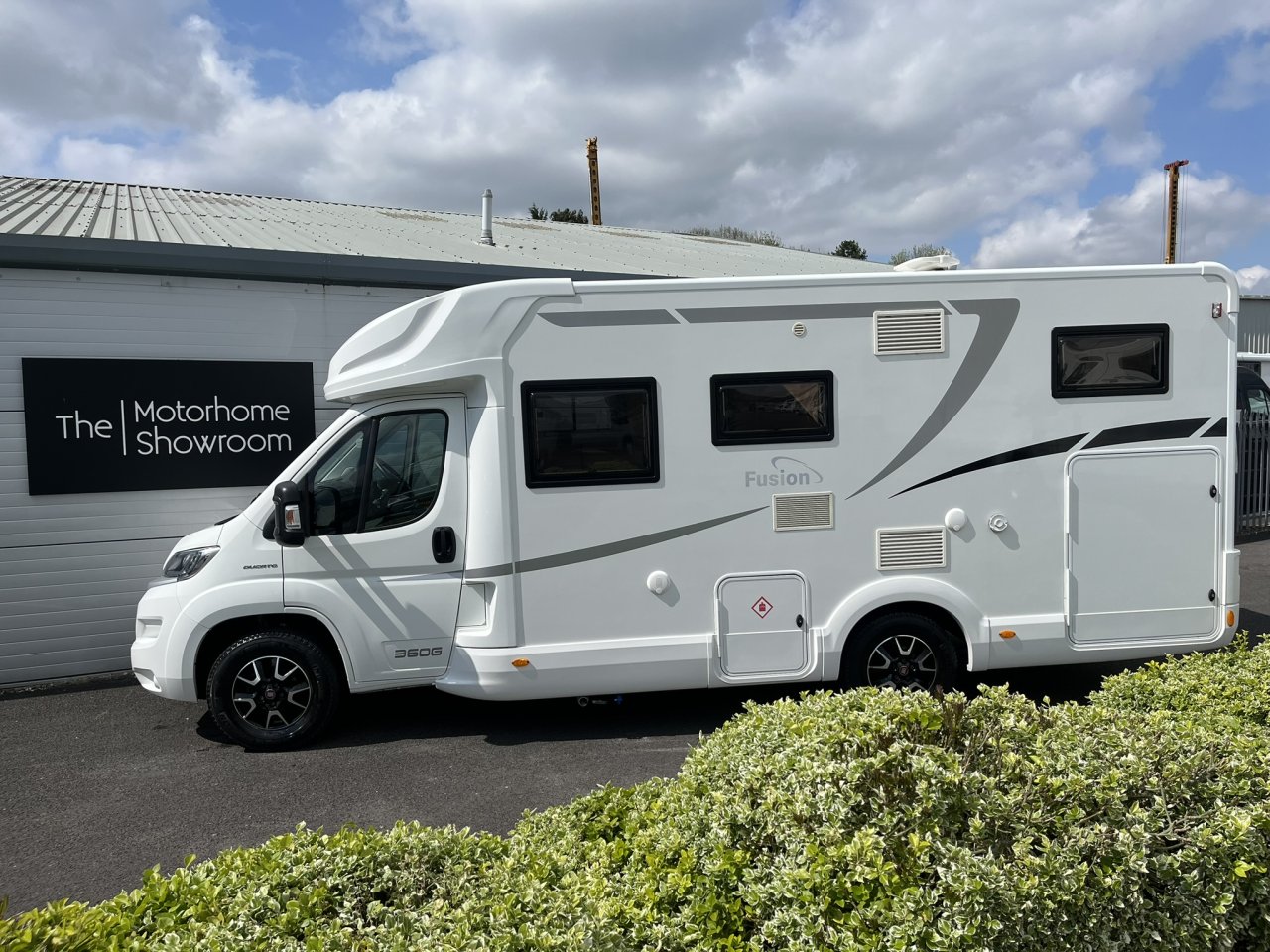 Key inside features include: 4 comfortable births Provided by the Electric drop down bed and a large fixed transvers bed, a Fully fitted kitchen with large spacious dinette and much much more for you to discover.The McLouis Fusion range is renowned for offering excellent value for money, combining Italian design with practical British touring needs. This 360G is a great all‑rounder—easy to drive, comfortable to stay in, and ready for many more adventures.