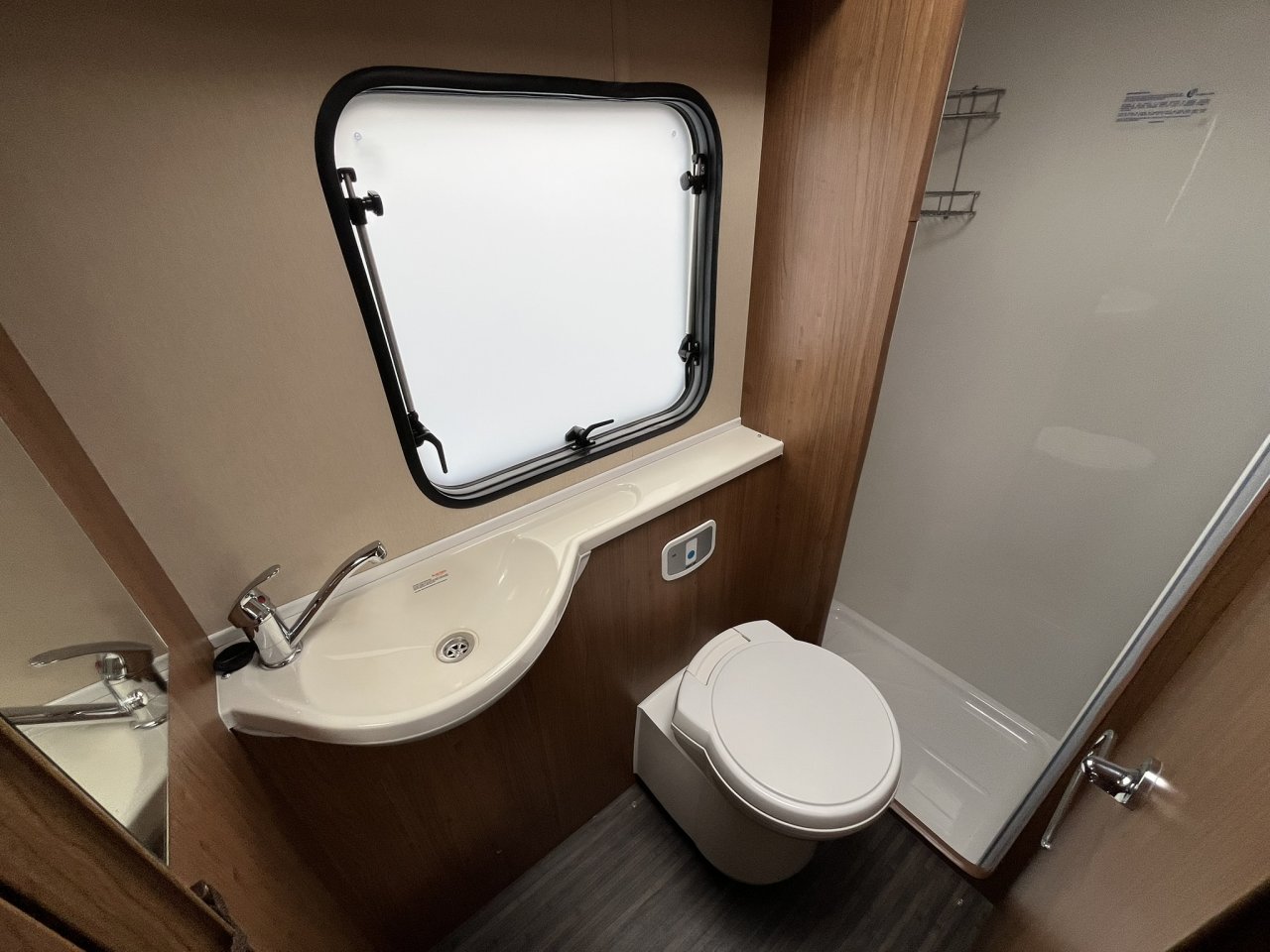 The Imala 715 features a bright and welcoming front lounge and dinette, with swivel cab seats that help create a comfortable and sociable living area. Large windows and a rooflight allow natural light to flood the interior, giving the motorhome a spacious feel throughout the day. This area easily converts into an additional sleeping space when required, without compromising daytime comfort. At the rear, you’ll find a fixed double bed, providing a dedicated and comfortable sleeping area with no need to convert seating each night. This layout is particularly popular for longer trips, offering convenience and privacy along with excellent storage beneath the bed.
