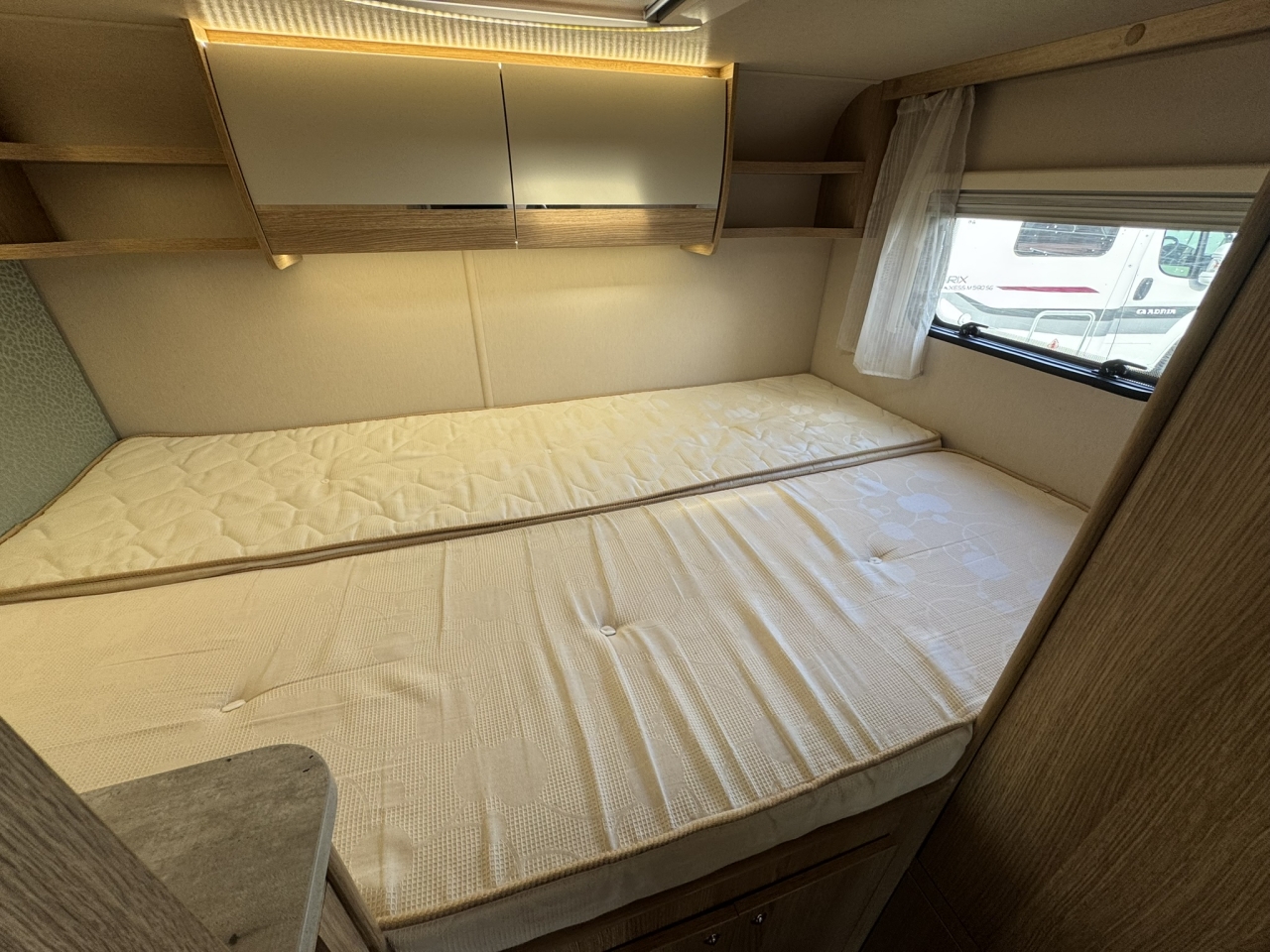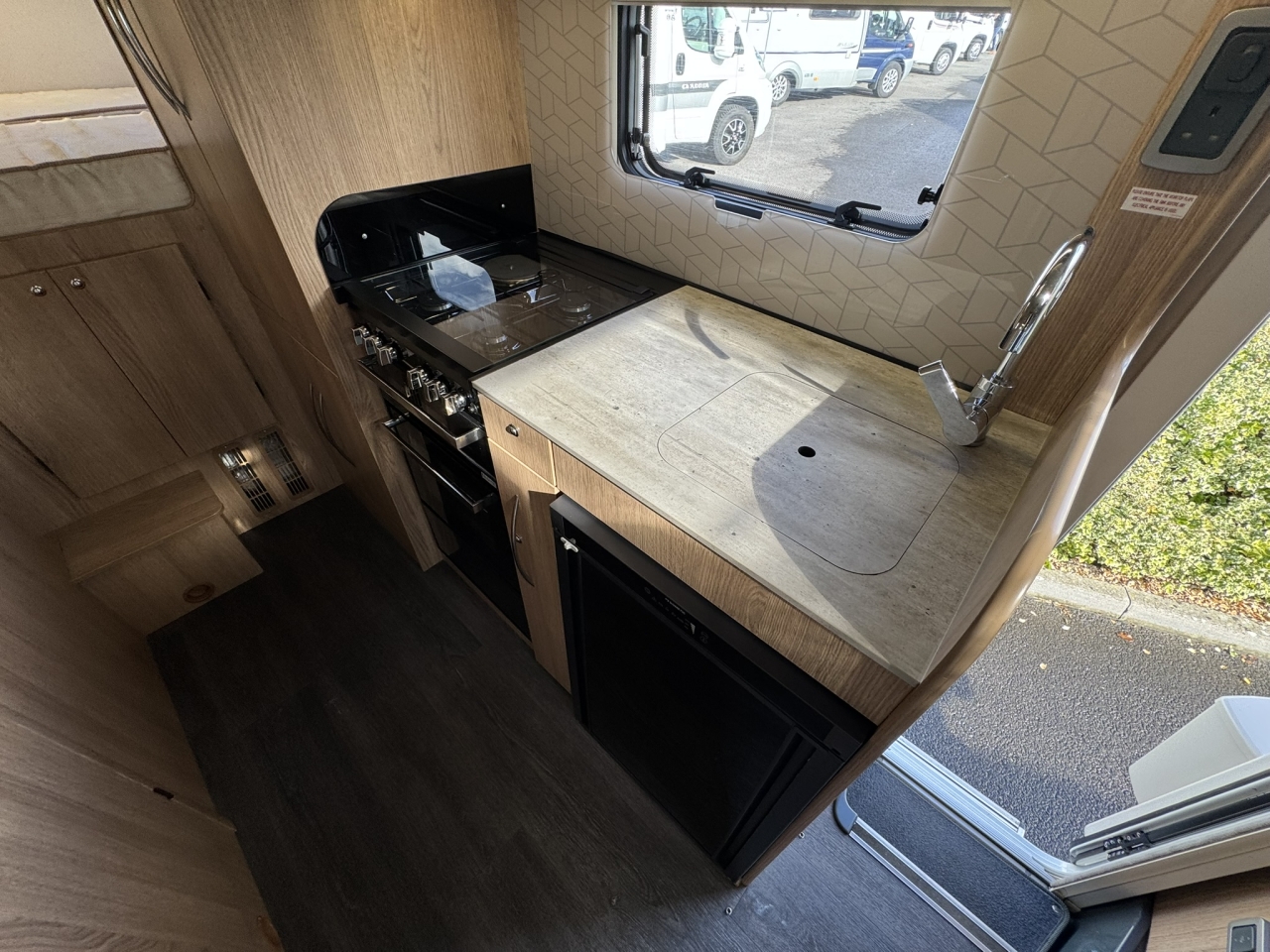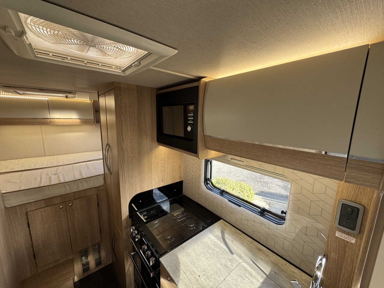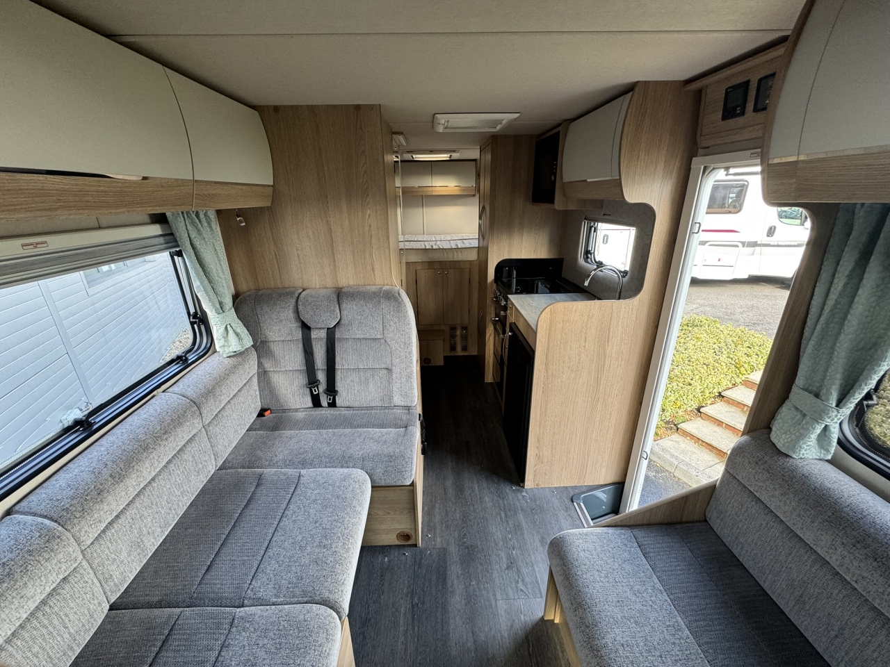 This highly sought-after layout is popular thanks to the secluded sleeping area to the rear and is also popular among those with an active lifestyle thanks to the storage compartment with external access.
