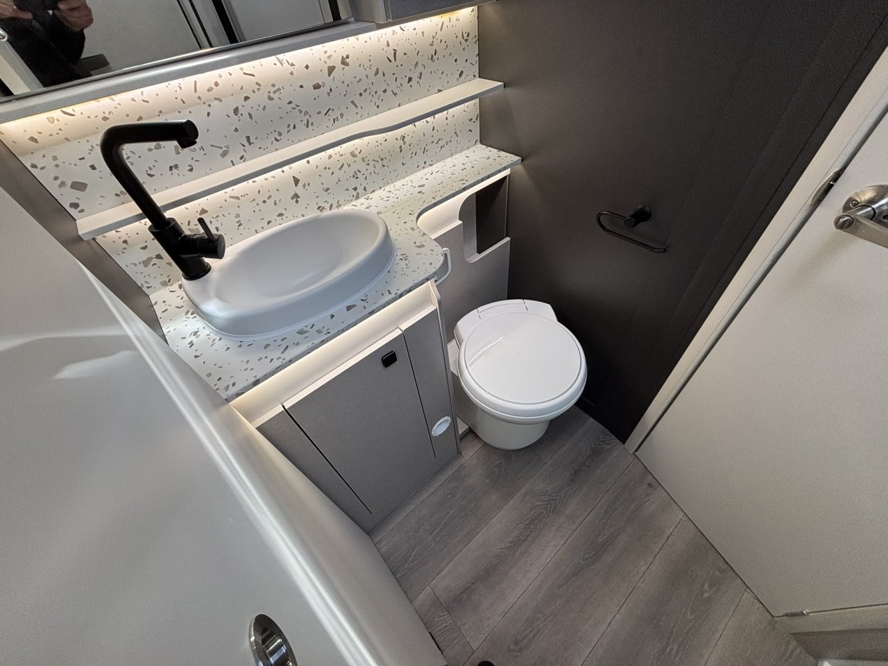 - Thetford cassette toilet with electric flush
